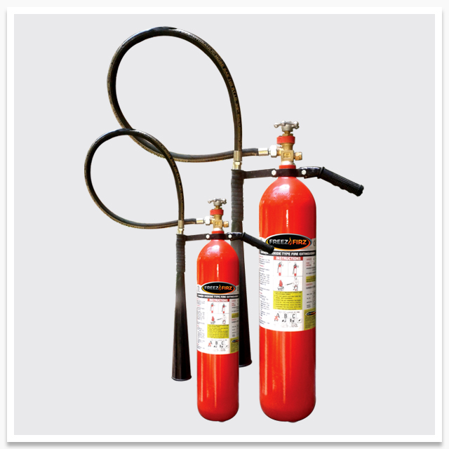 Freez Firz Brand Carbon Dioxide extinguishers contain pressurized liquid carbon dioxide, which turns to gas when expelled. |