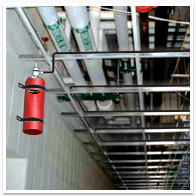 Many facilities such as mall, commercial complex and educational institutions use false floors and ceilings to save space and allow for hassle-free wiring. often, such wire racks and cable-lenghts can overheat due to prolonged usage of equipment and are liable to catch fire. In such an event, it is important to extinguish the fire before it can spread and affect the equipment that these cables are connected to.