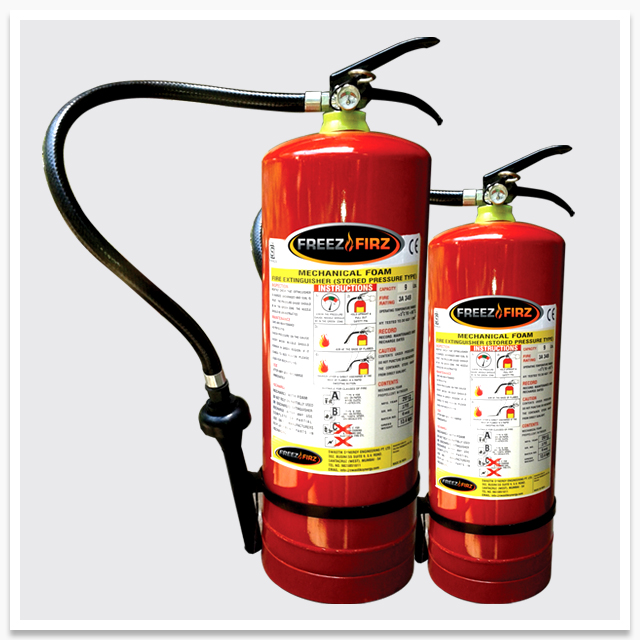 Freez Firz Brand Foam Fire Extinguishers contains Aqueous Film Forming Foam concentrate (AFFF) which has characteristics of film forming due to which flame is rapidly knocked down and sealing of fuel surface is achieved.